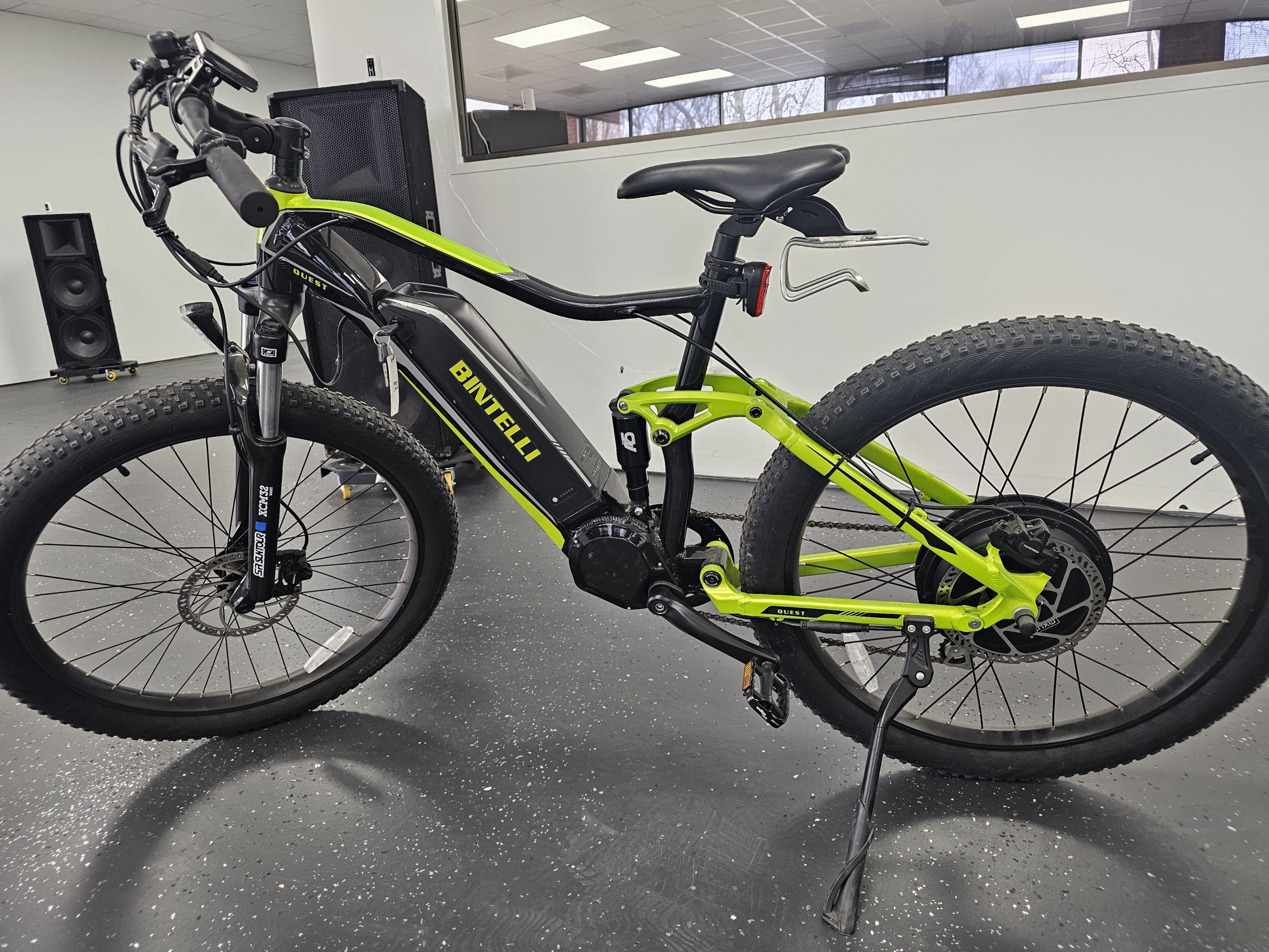 The Bintelli Quest e-bike features a powerful 750W motor, 6061 aluminum alloy frame, front and rear suspension, Tektro hydraulic disc brakes, and fat tires for off-road capability, plus an LCD display, pedal assist (5 levels) and throttle for versatile riding, a removable 48V battery (around 10.4Ah), and Shimano 8-speed shifting, offering a blend of performance and comfort.