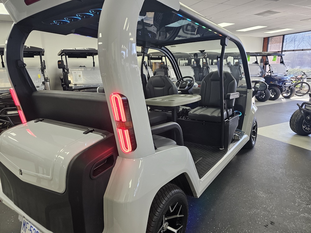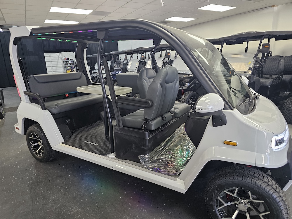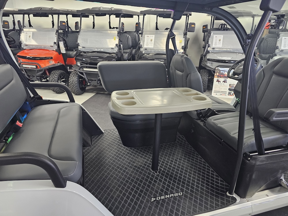 The 2026 Denago City Cart is a street-legal, 6-passenger electric vehicle featuring a 51.2V 205Ah lithium-ion battery, 5kW-6.3kW AC motor, and up to 80 miles of range. It includes advanced technology like a 13″ touchscreen with Apple CarPlay/Android Auto, backup camera, and NFC keyless entry. Luxury amenities include power steering, 14″-16″ wheels, underglow lighting, and a rear lounge seat.