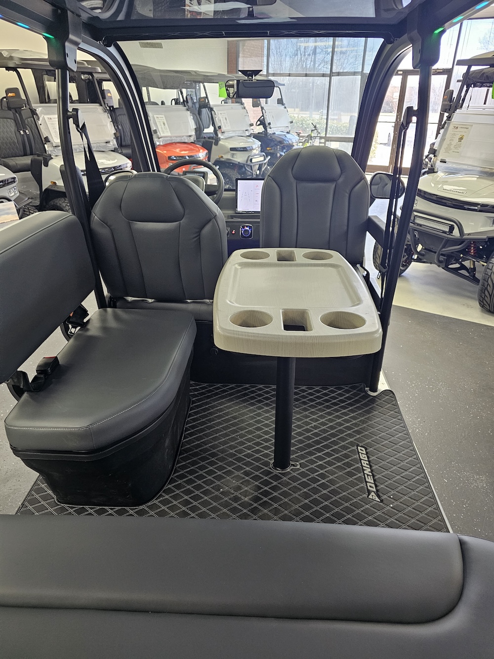 Design & Comfort: 360-degree picnic table, rear lounge seating, tilt steering, and a tinted moonroof.