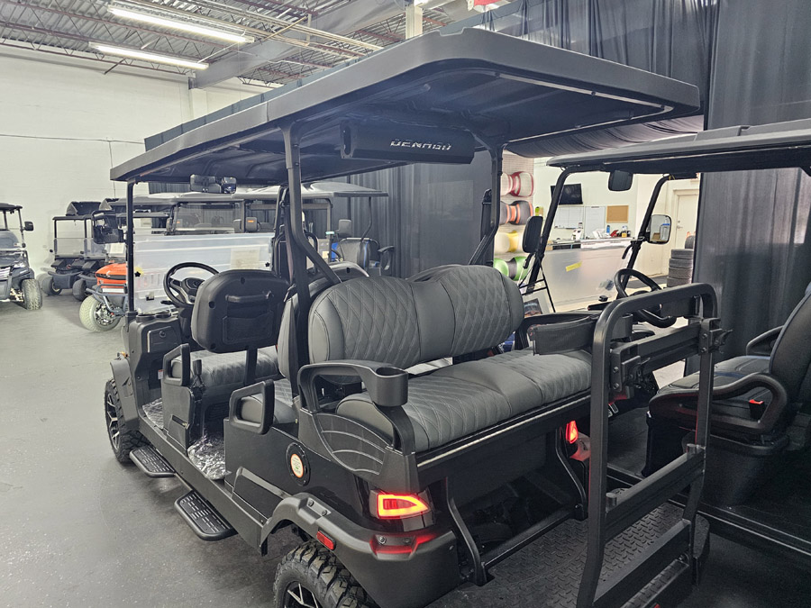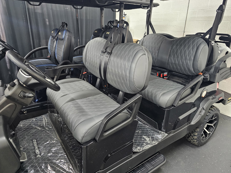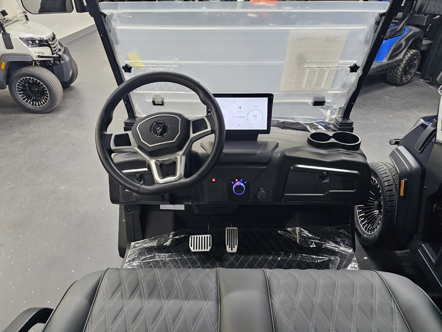 Safety & Street Legal: 4-wheel hydraulic brakes, 3-point seatbelts, LED headlights/taillights, turn signals, and a 25 mph top speed.