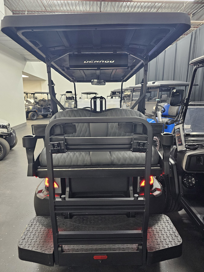 The 2026 Denago Rover XL6 is a 6-passenger, street-legal (LSV) lithium-ion golf cart featuring a 5kW AC motor, ~32-mile range, and 25 mph top speed. It includes a 10.1-inch touchscreen with Apple CarPlay/Android Auto, backup camera, 4-wheel hydraulic brakes, LED lighting, and a Bluetooth soundbar.