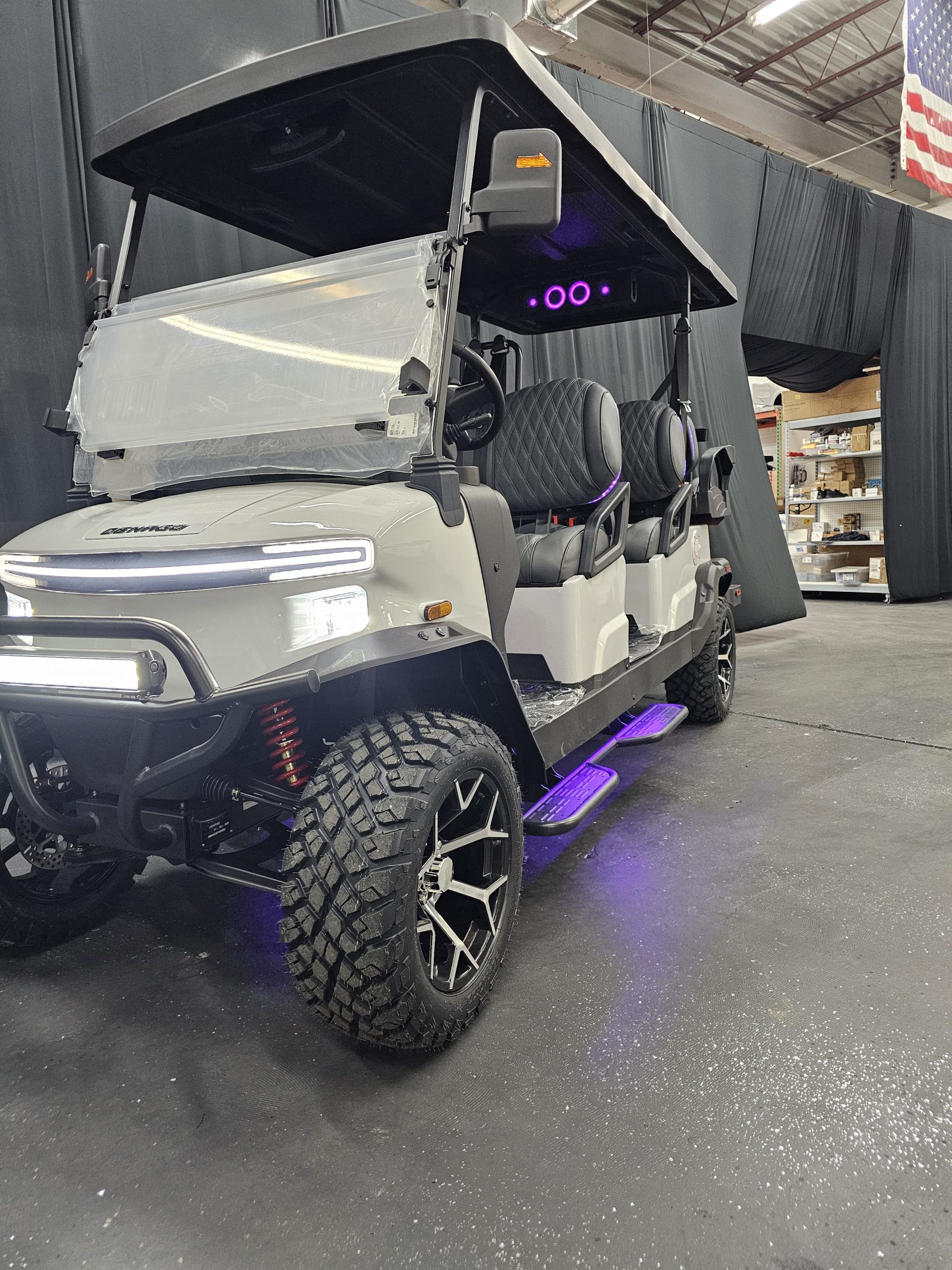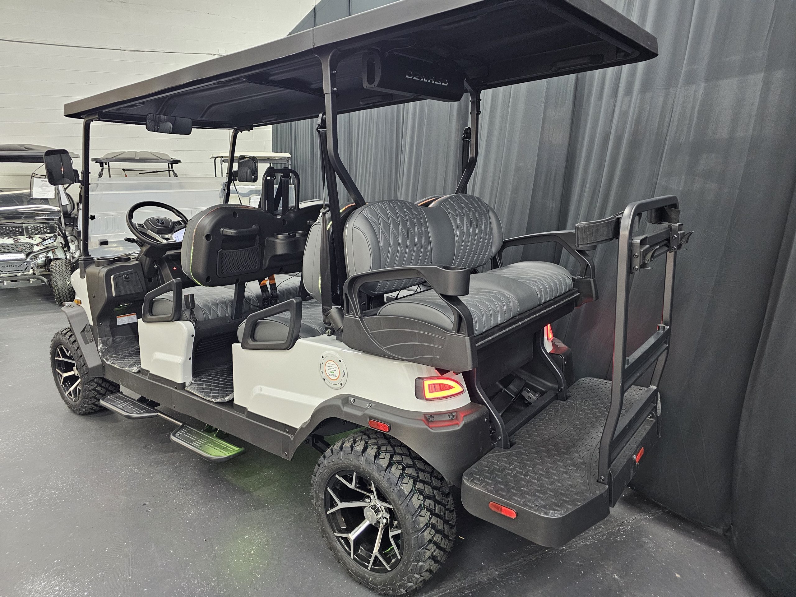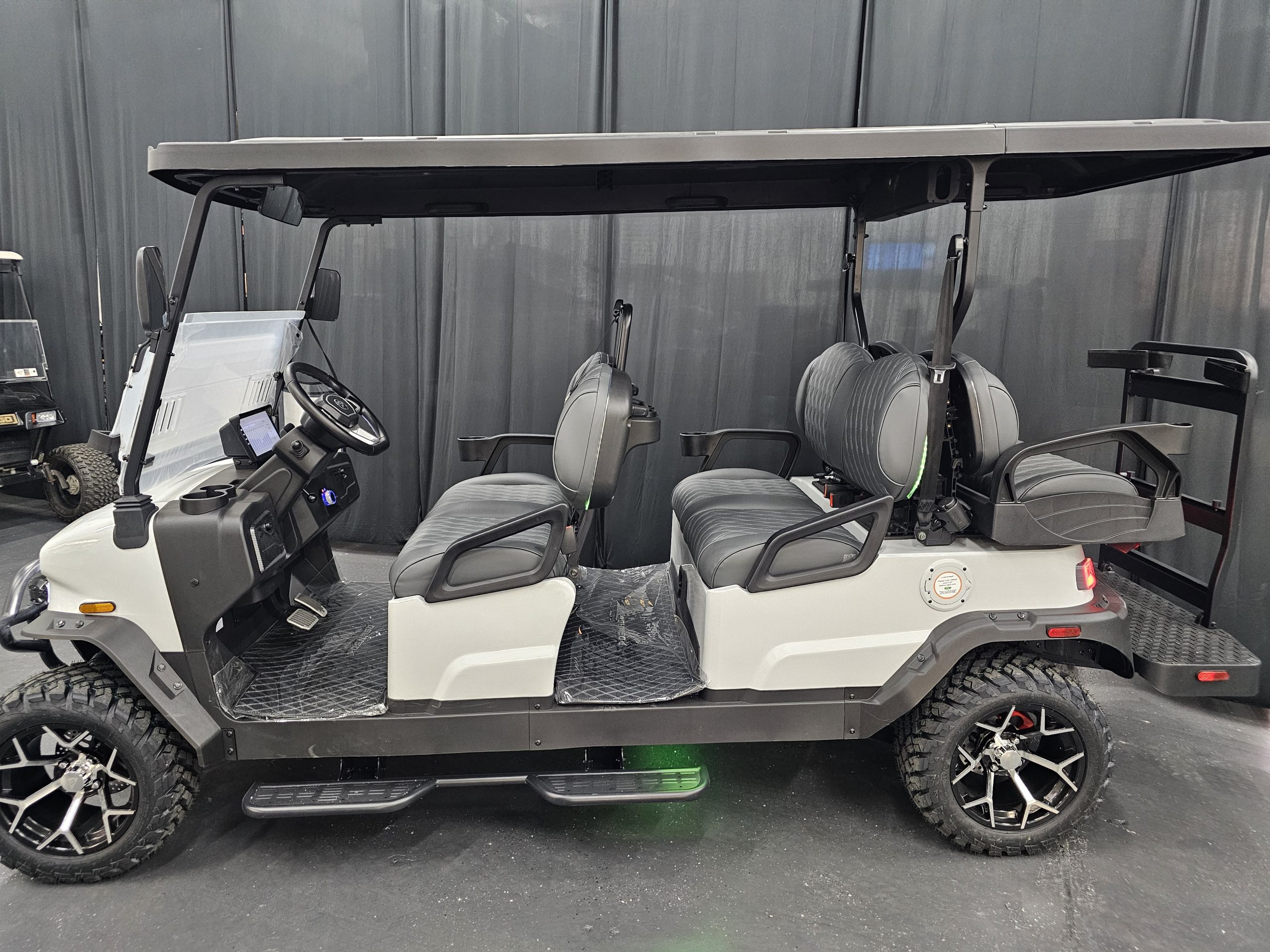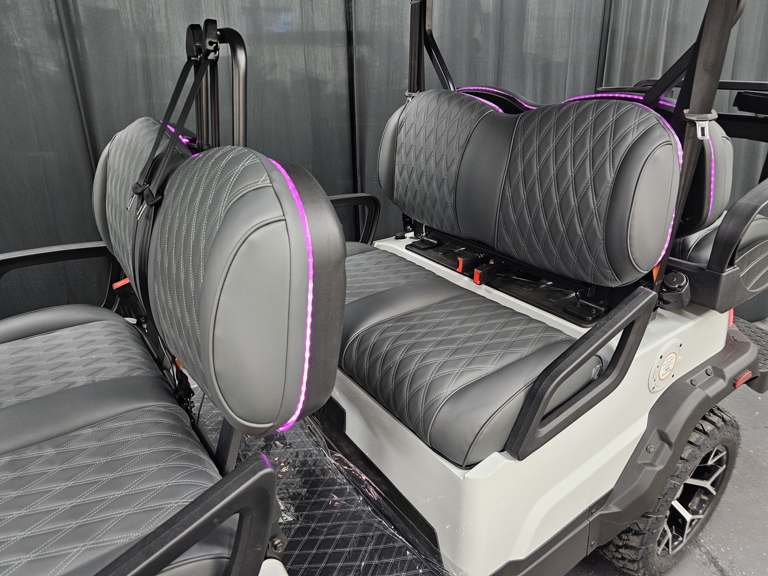 Safety & Street Legal: 4-wheel hydraulic brakes, 3-point seatbelts, LED headlights/taillights, turn signals, and a 25 mph top speed.