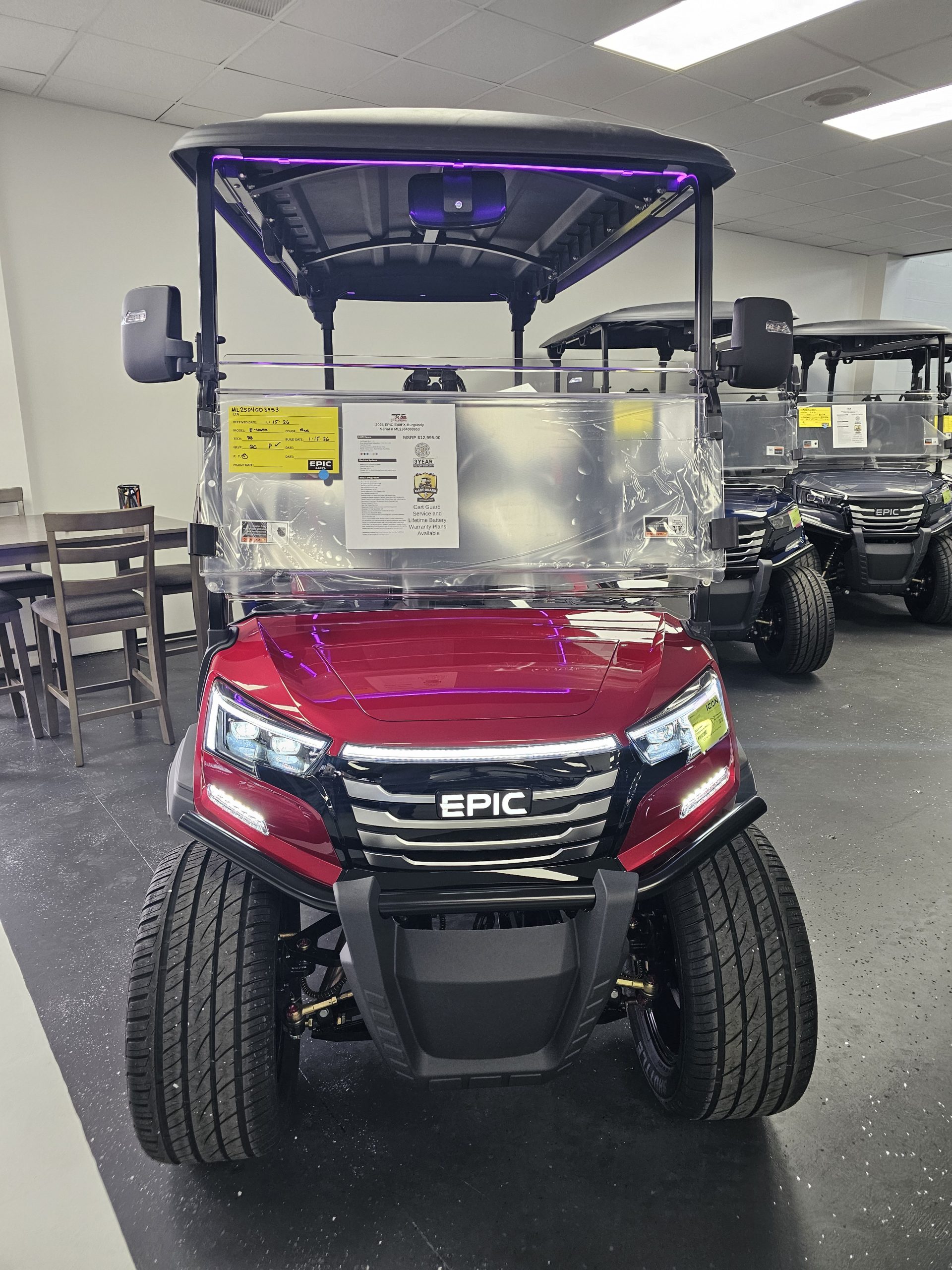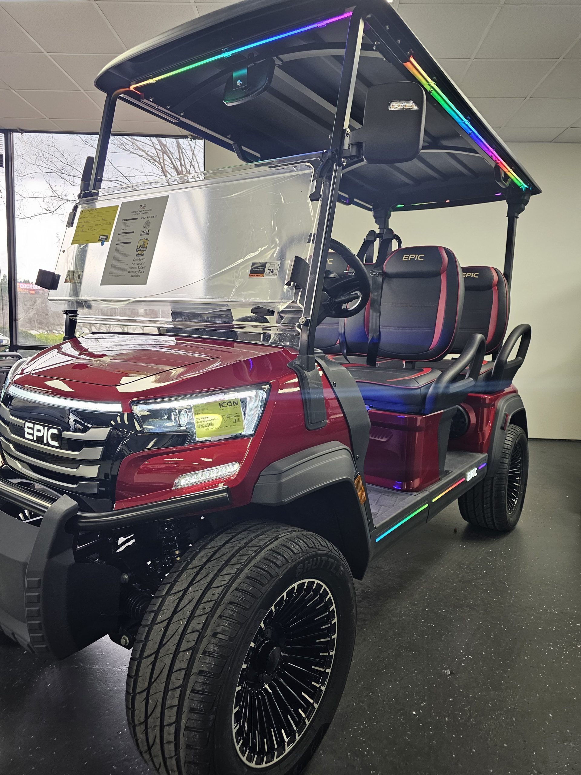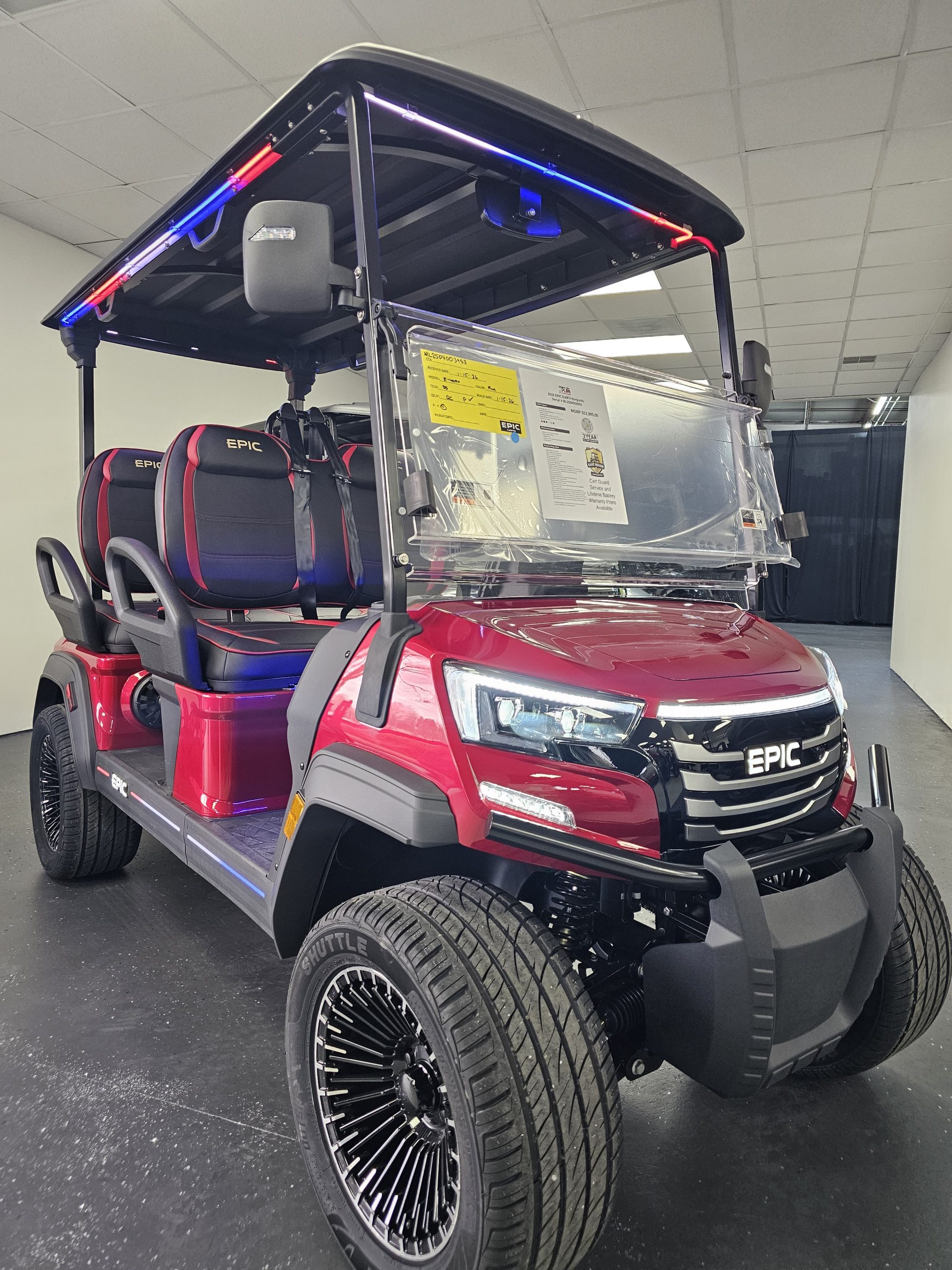 Looking for the perfect new golf cart? Look no further than EPIC Carts! Whether you need a two-seater, four-seater, or six-seater golf cart – EPIC Carts come fully loaded with power, performance, style and luxurious features that give credence to the EPIC name. The brand new award-winning FX Series has taken the industry by storm, creating major golf cart envy from enthusiasts nationwide. Are you in the market for a head-turning low-speed vehicle? Take a test drive at your local EPIC dealer today, and experience a ride like no other!