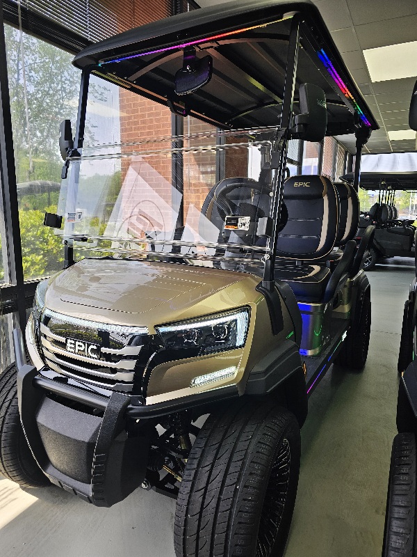 Looking for the perfect new golf cart? Look no further than EPIC Carts! Whether you need a two-seater, four-seater, or six-seater golf cart – EPIC Carts come fully loaded with power, performance, style and luxurious features that give credence to the EPIC name. The brand new award-winning FX Series has taken the industry by storm, creating major golf cart envy from enthusiasts nationwide. Are you in the market for a head-turning low-speed vehicle? Take a test drive at your local EPIC dealer today, and experience a ride like no other!