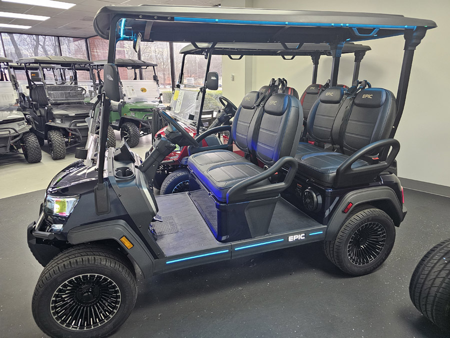 Looking for the perfect new golf cart? Look no further than EPIC Carts! Whether you need a two-seater, four-seater, or six-seater golf cart – EPIC Carts come fully loaded with power, performance, style and luxurious features that give credence to the EPIC name. The brand new award-winning FX Series has taken the industry by storm, creating major golf cart envy from enthusiasts nationwide. Are you in the market for a head-turning low-speed vehicle? Take a test drive at your local EPIC dealer today, and experience a ride like no other!