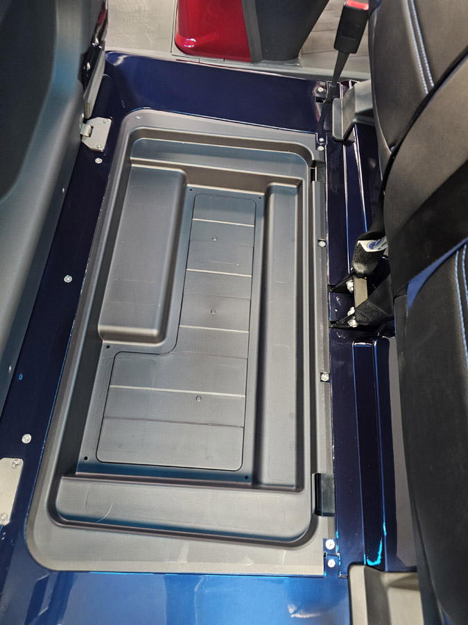 Storage: Removable & Lockable Trunk in Rear, Latched and Lit Frunk, Storage Tray Beneath Rear Seats, Locking Glove Compartments